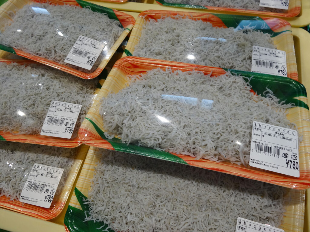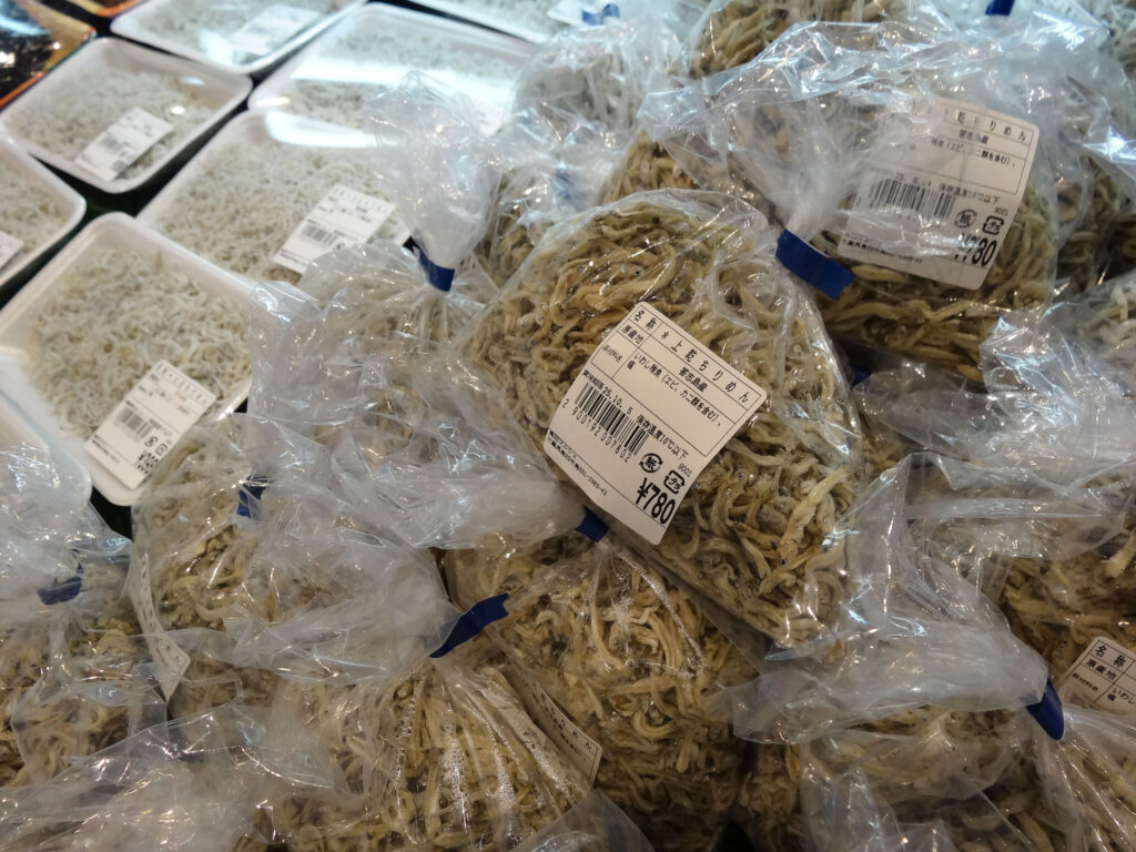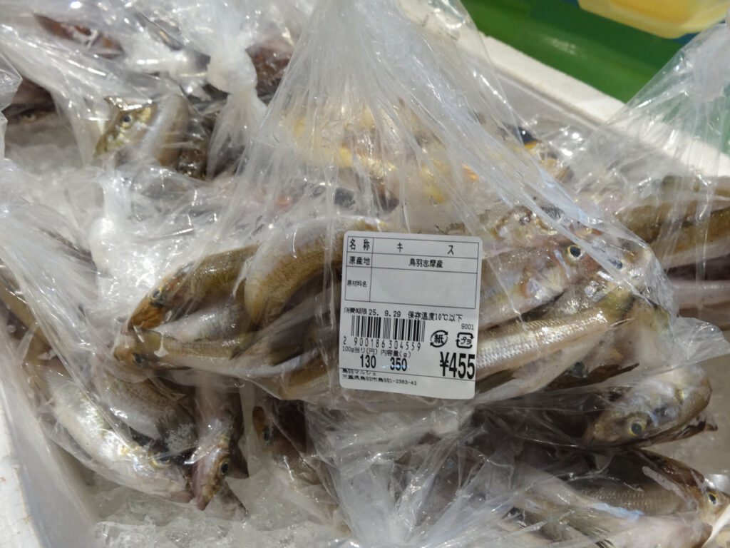 鮮魚コーナーでは、キスなどのお買得な袋入りのお魚、ちりめん、サク、お造りなどを販売しております🐟