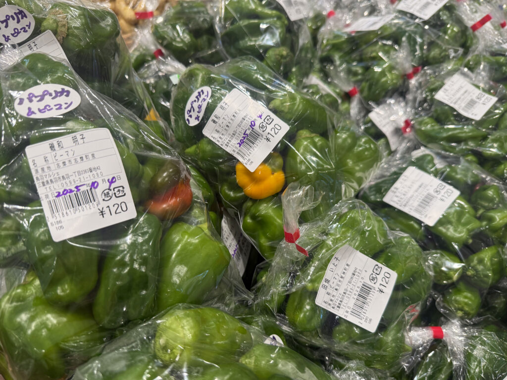 農産にはピーマン、パプリカ、なす、芋の茎や落花生、栗、バジル、シークワーサーなどが入荷しております🥬🍆
