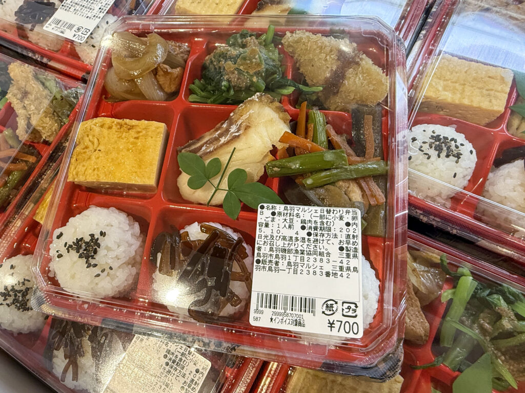 お弁当・お惣菜コーナーには、マルシェ日替わり弁当、牡蠣のお好み焼きなどが並んでおります🍱