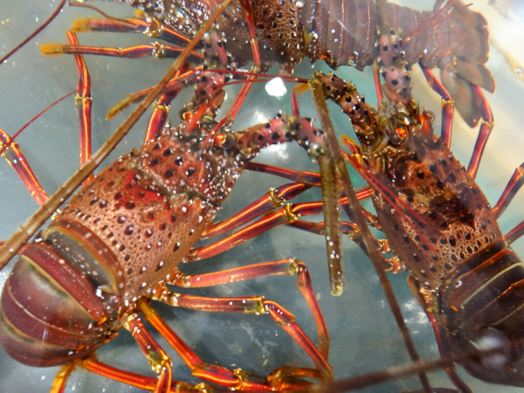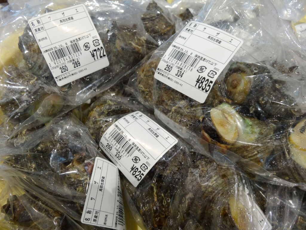 鮮魚コーナーでは、活伊勢海老やマダイなどの一匹売りのお魚、サザエ、ちりめん、サク、お造りなどを販売中🦐🐟