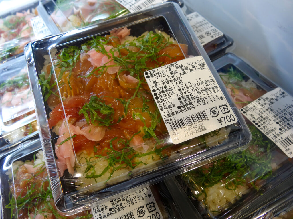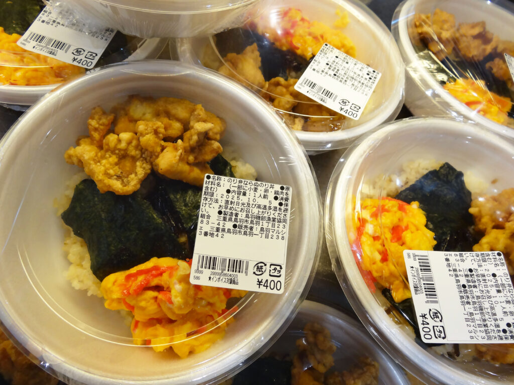 お弁当・お惣菜コーナーには、海苔丼や牡蠣のお好み焼き、ミニおかずセット、てこね寿司にマルシェ日替わり弁当などが並んでおります🍱🍚✨