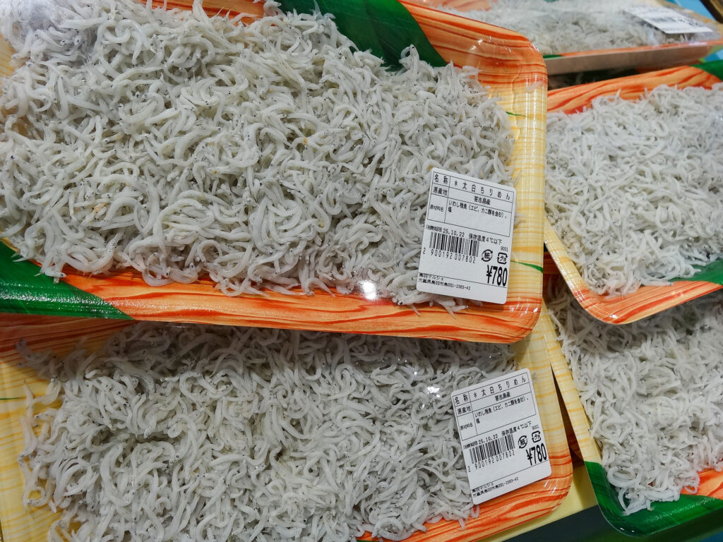 鮮魚コーナーでは、ほかにも活伊勢海老やサザエ、お買い得な袋入りのお魚に、ちりめん、サク、お造りなどを販売しております🦐🐟