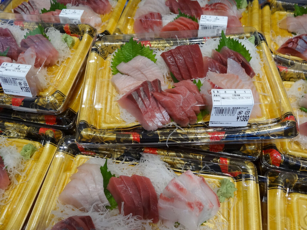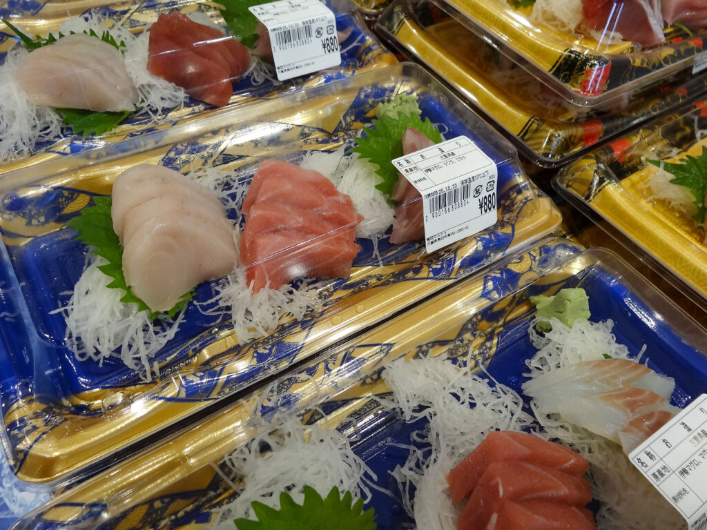 魚売り場の気のいいスタッフが食べ方をアドバイスしますので、お気軽に声をかけて下さい。