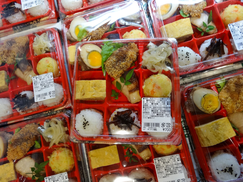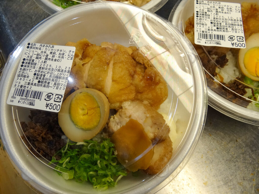 レストラン前のお弁当・お惣菜コーナーには、マルシェ日替わり弁当、てこね寿司、鰹フライ、チキンやチャーシューがたっぷりの肉まみれ丼などが並んでおります😋✨