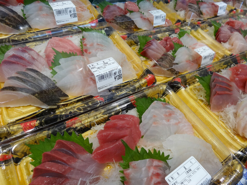 魚売り場の気のいいスタッフが食べ方をアドバイスしますので、お気軽に声をかけて下さい。