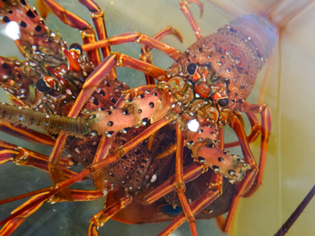 鮮魚コーナーでは、活伊勢海老、お造りやサク、ヒオウギ貝、お買い得な袋入りのお魚などを販売中🐟🦐