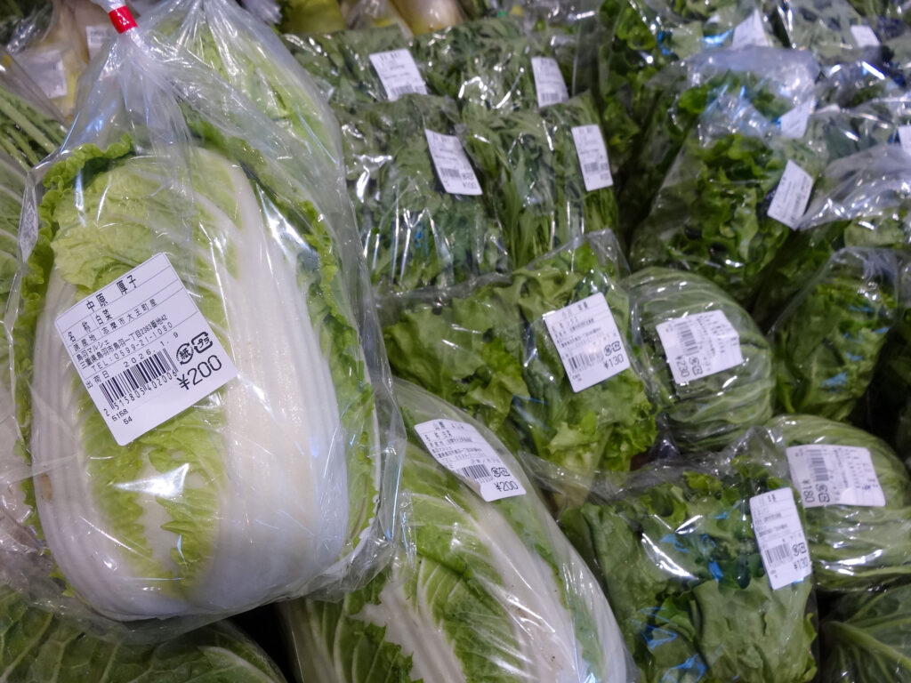 農産には、白菜にキャベツ、チンゲン菜、しいたけ、ブロッコリー、大根などのお野菜が盛りだくさんです🥬🥦