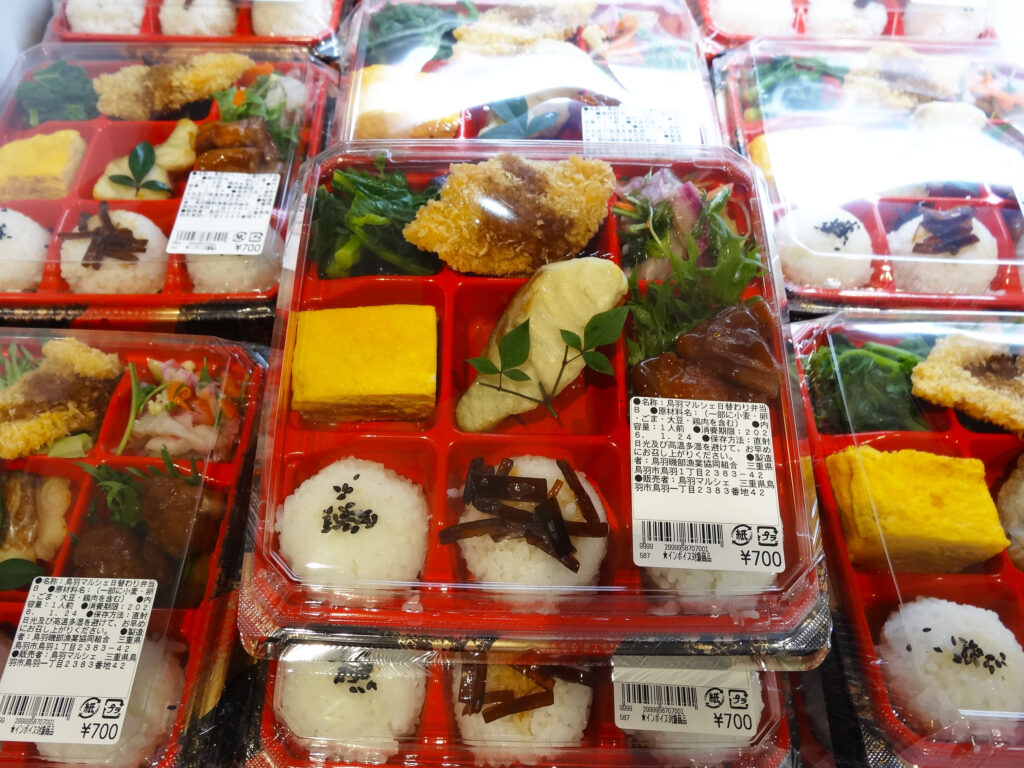 お弁当・お惣菜コーナーには、マルシェ日替わり弁当、てこね寿司、海鮮お好み焼きなどが並んでおります🍱✨