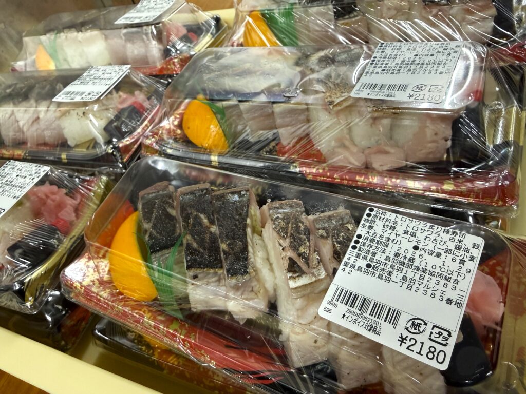 本日のお弁当・お惣菜コーナーには、数量限定で「トロさわらの炙り棒寿司」が並んでおります🐟✨