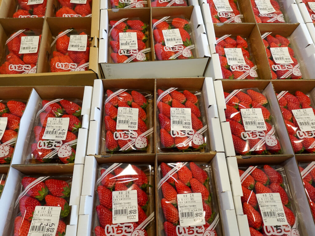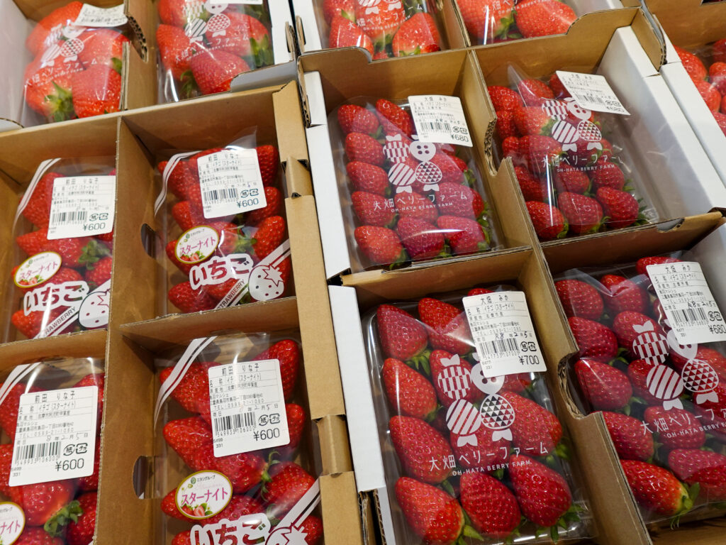 農産には大粒のいちご (かおり野) が並んでおります🍓✨
