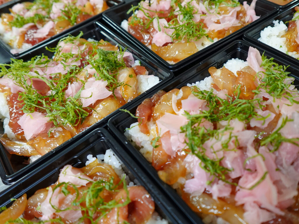 お弁当・お惣菜コーナーには、地魚をたっぷり使用したてこね寿司が並んでおります✨