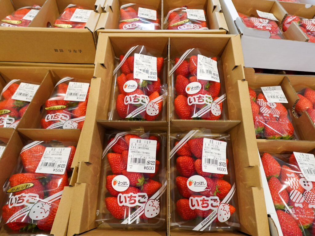 章姫、かおり野、よつぼし、やよいひめにスターナイトなどのいちご、八朔、ポンカンなどの柑橘類もたくさん並んでおります🍓🍊