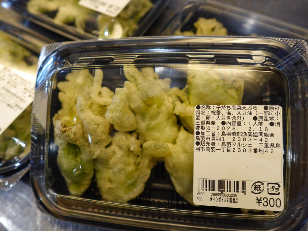 お弁当・お惣菜コーナーでは、てこね寿司、子持ち高菜の天ぷら、ネギマ、チキンステーキなどが並んでおります🥢✨