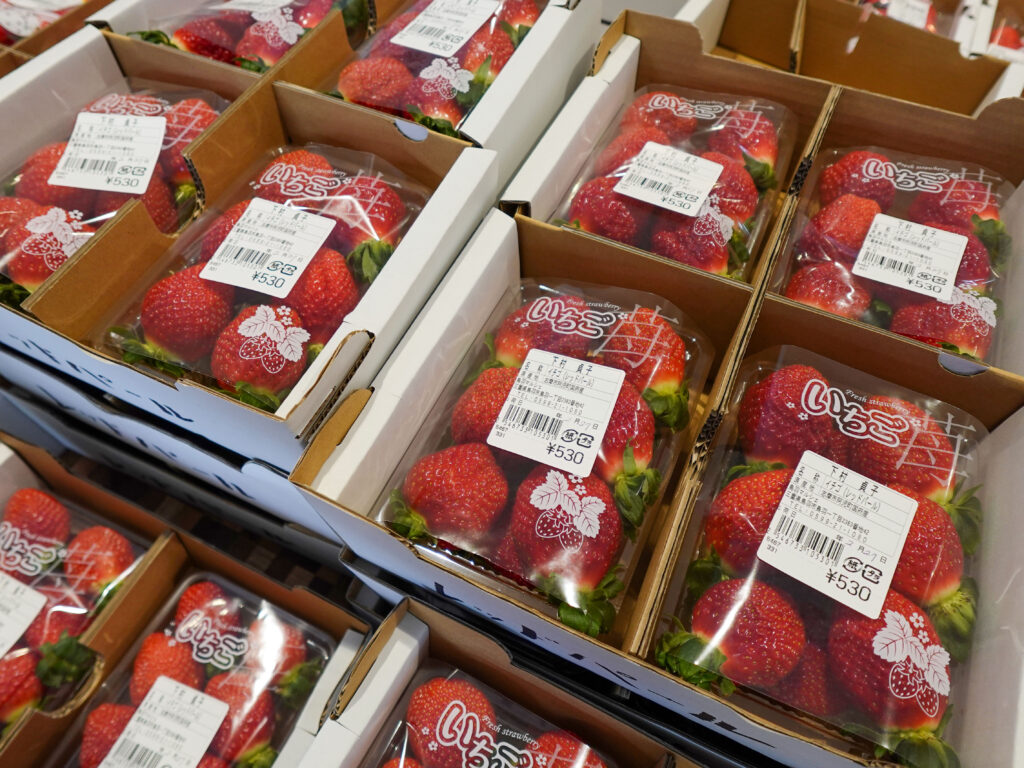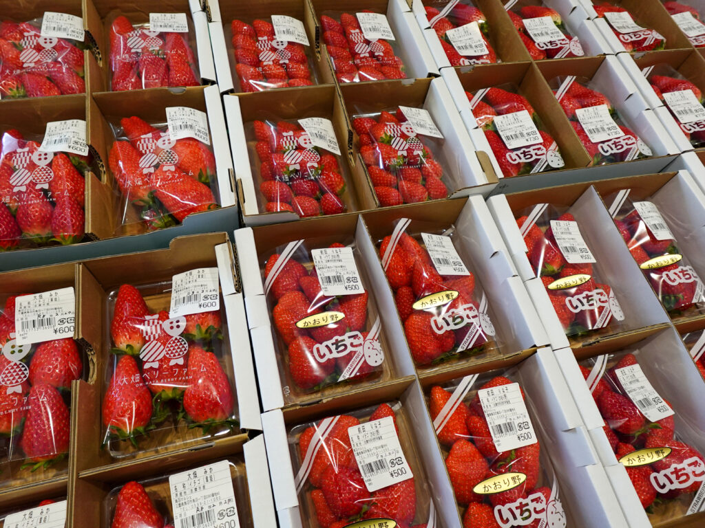 レッドパールに章姫、かおり野などのいちご、八朔、ポンカンなどの柑橘類などの果物もたくさん並んでおります🍓🍊