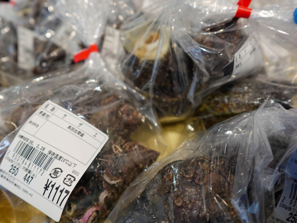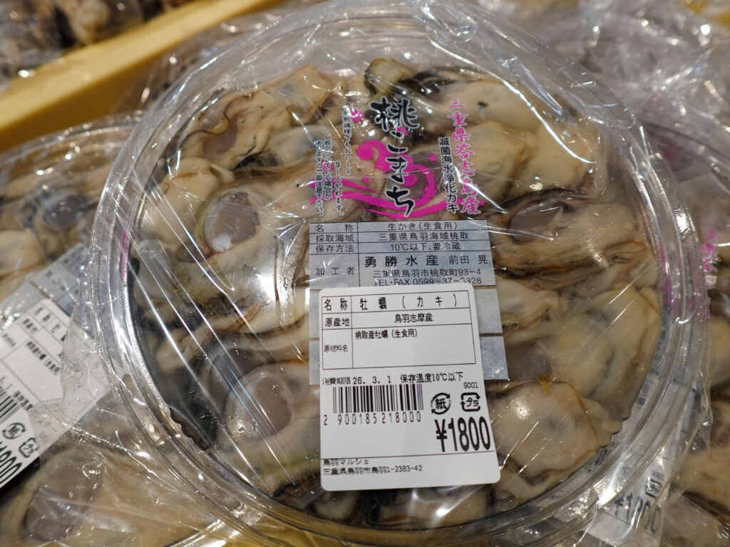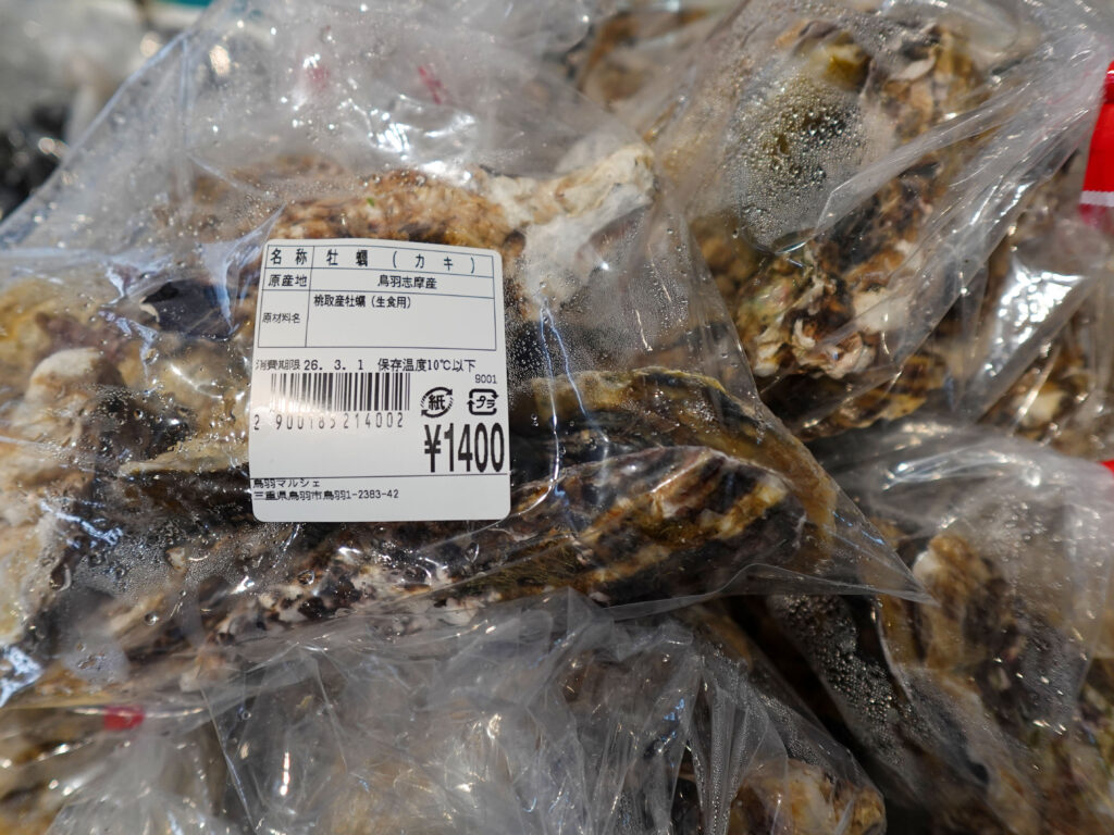 鮮魚コーナーでは牡蠣やサザエ、お買い得な袋入りのお魚、ちりめん、サク、お造りなどを販売中🦪🐟