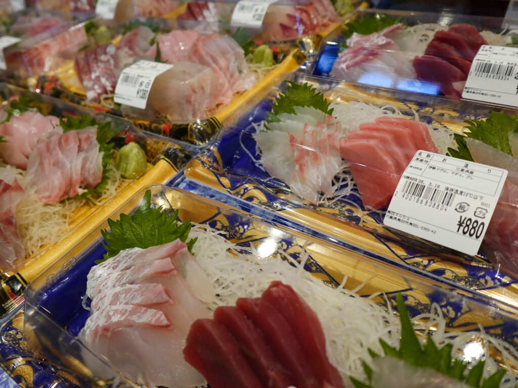 魚売り場の気のいいスタッフが食べ方をアドバイスしますので、お気軽に声をかけて下さい。