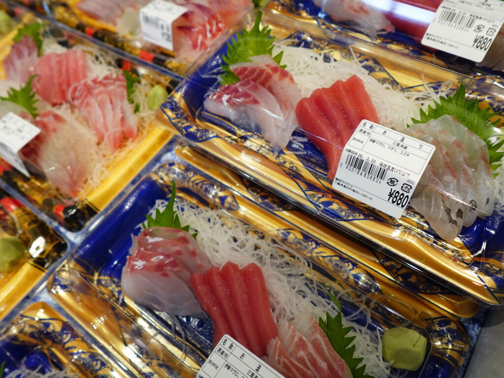 魚売り場の気のいいスタッフが食べ方をアドバイスしますので、お気軽に声をかけて下さい。