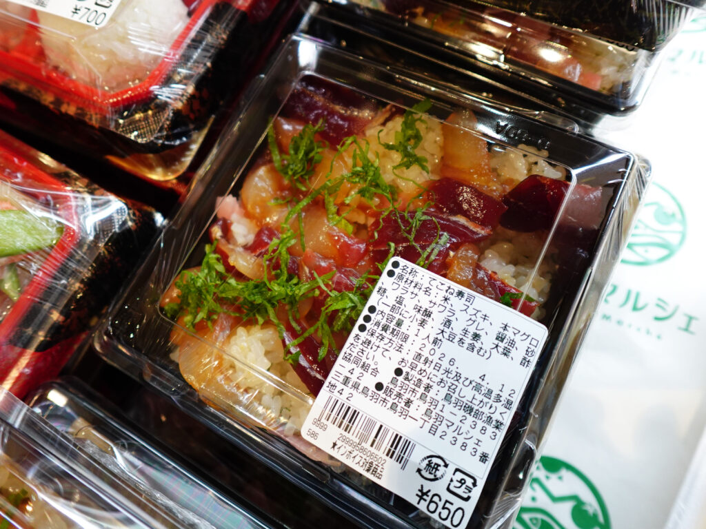 お弁当・お惣菜コーナーにも、マルシェ日替わり弁当、てこね寿司などが並んでおります🍱