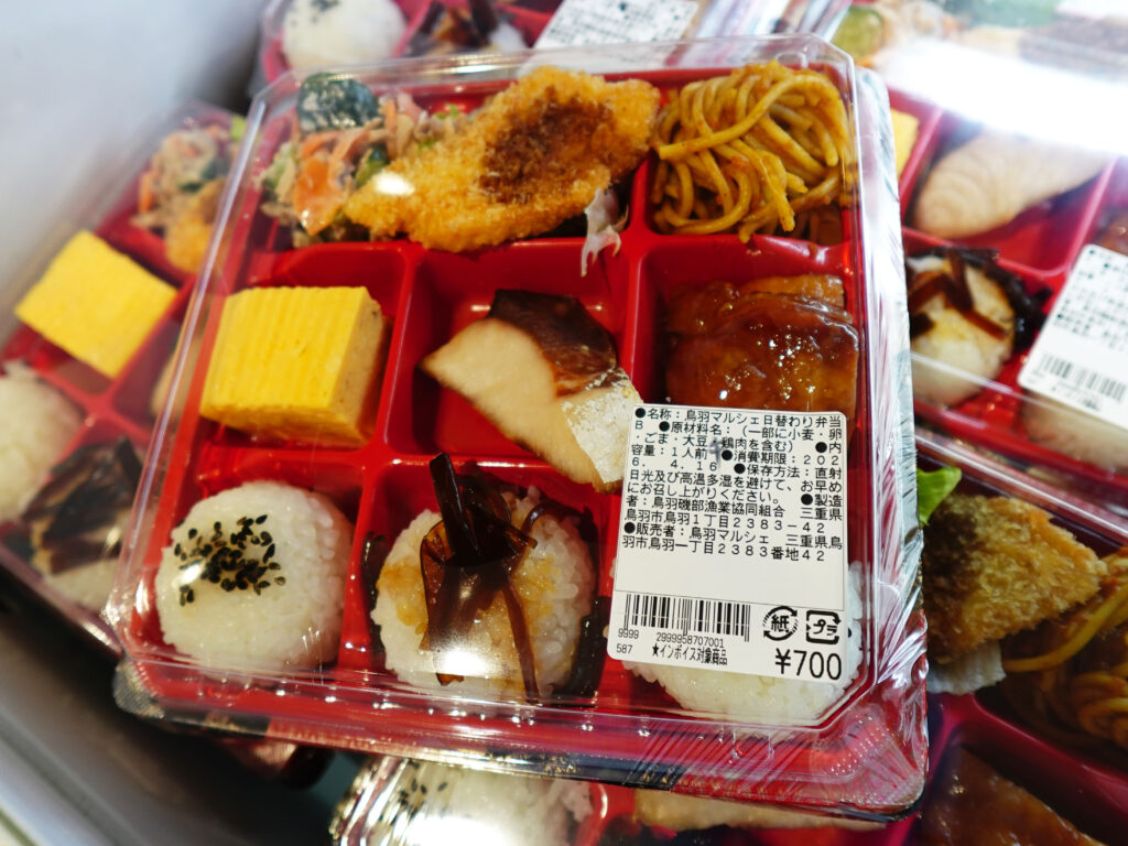 お弁当・お惣菜コーナーには、地魚のアラ煮、ミニ弁当やマルシェ日替わり弁当などが並んでおります😋