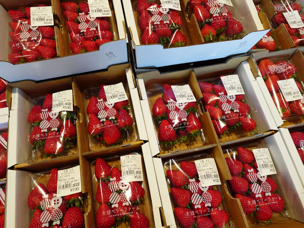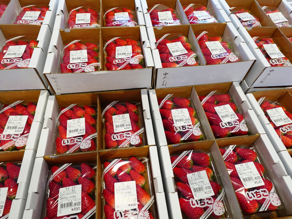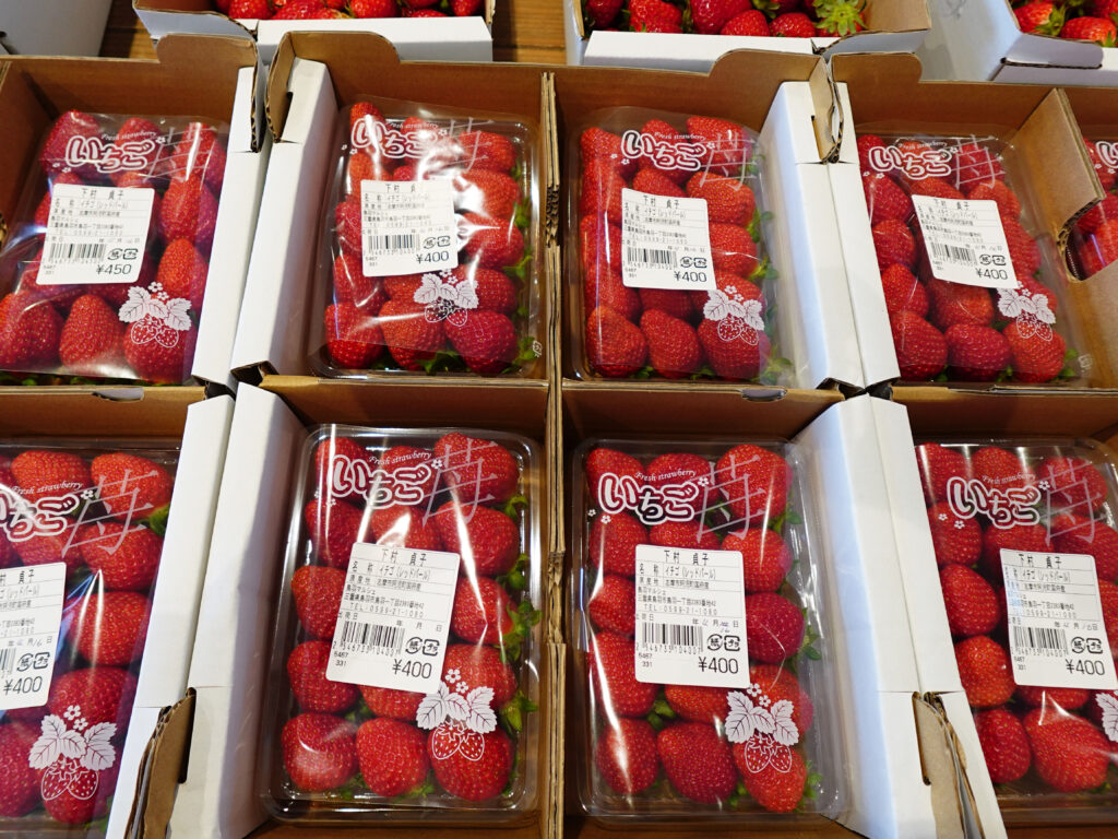 レッドパールや章姫、スターナイトなどのいちごもたくさん並んでおります🍓