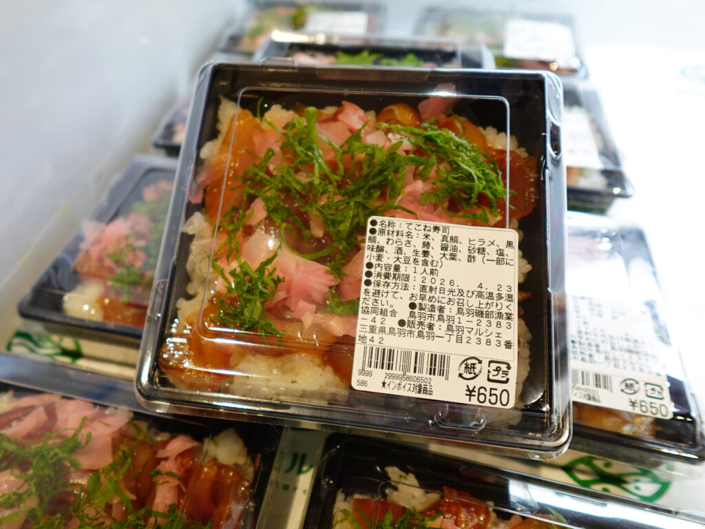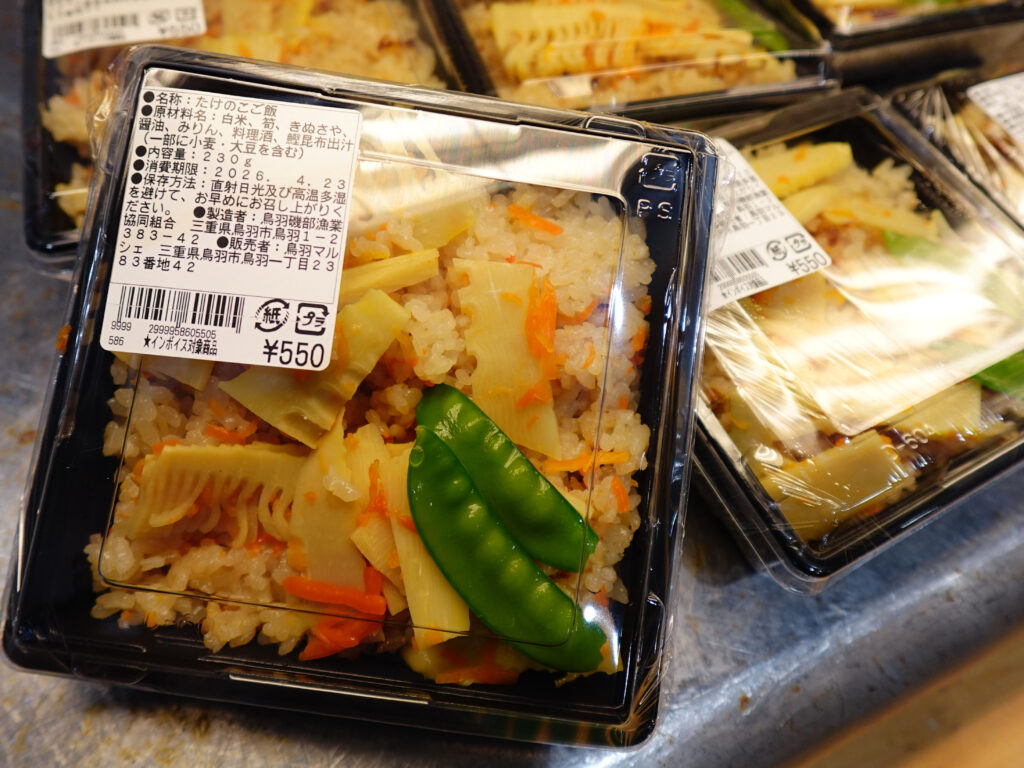 お弁当・お惣菜コーナーには、たけのこご飯、てこね寿司にマルシェ日替わり弁当などが並んでおります🍱