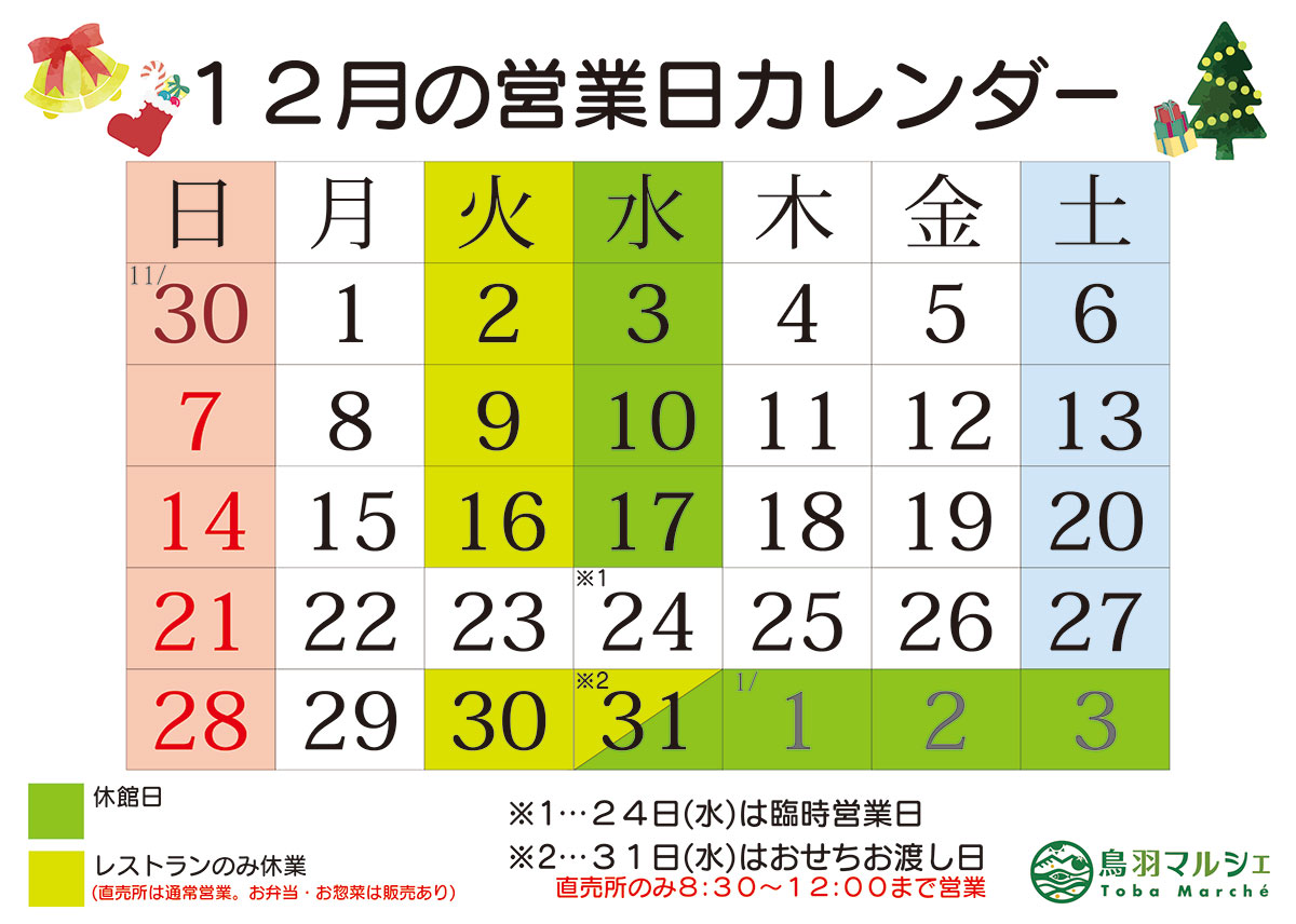 ◆2025年 12月・年末年始の営業案内